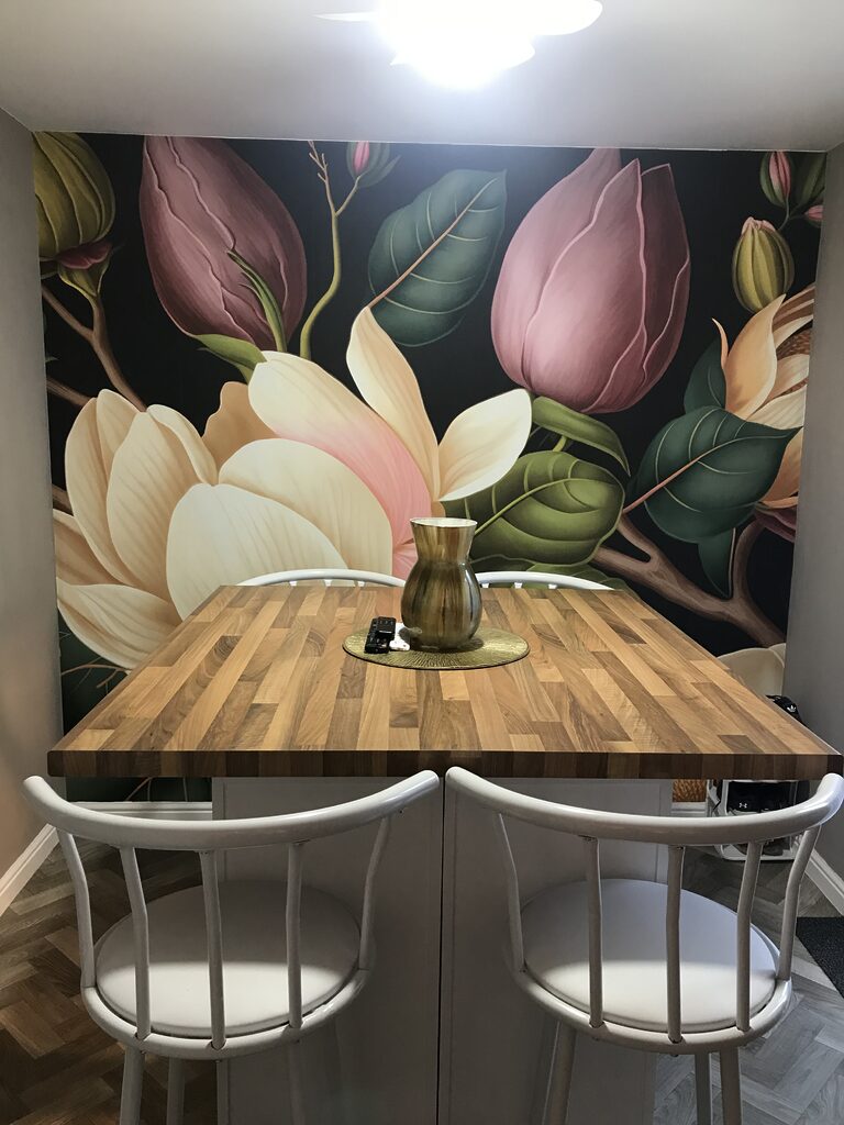 Tapeta je pekná, zaujala aj návštevu a z diaľky vyzerá ako maľovaná.
