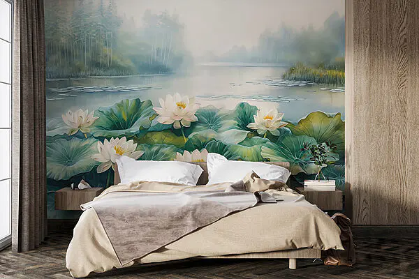 13.31 €7.98 €Fototapety Maľba rybníka s bielymi kvetmi a zelenými listami