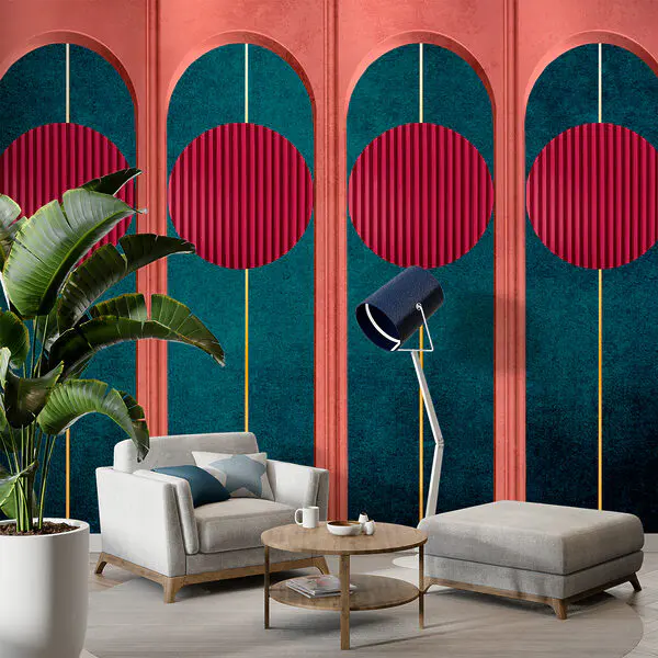 13.31 €7.98 €Fototapety Stena s červenými kruhmi a modrými a zelenými stenami