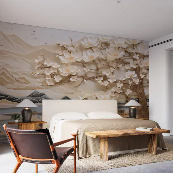 13.31 €7.98 €Fototapety Strom s bielymi kvetmi a horami