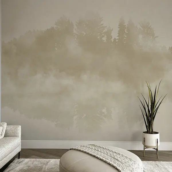 13.80 €7.59 €Fototapety Akvarel stromov a vtákov letiacich nad hmlistým lesom