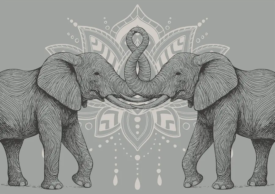 Fototapety Dva slony, ktoré sa dotýkajú chobotmi