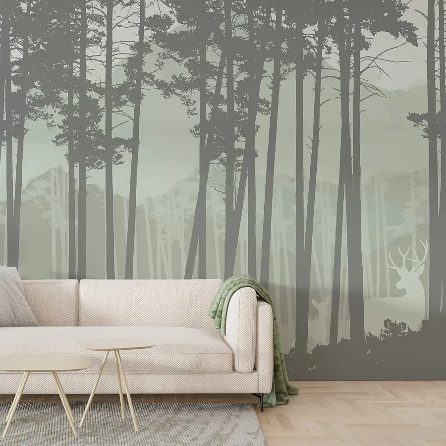 Premeňte akúkoľvek miestnosť na pokojnú svätyňu pomocou tejto očarujúcej nástennej maľby s pokojnou lesnou scénou. Predstavte si, že vstúpite do jemnej hmlistej krajiny, kde sa jemne kolíšu vysoké stromy a vykukujú jelene, ktoré dodávajú nádych lesného kúzla. Táto nástenná maľba, ktorá je ideálna pre útulné čitateľské kútiky alebo pokojné spálne, vnáša do interiéru atmosféru vonkajšieho prostredia a nabáda na pokoj a spojenie s prírodou. Jemné farby vytvárajú upokojujúcu atmosféru, ktorá je ideálna na relaxáciu po dlhom dni. Je to ako mať vlastný tajný les - samozrejme, bez komárov! Preneste si les domov a nechajte svoje steny rozprávať pokojný príbeh.
