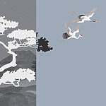 Fototapety Pár žeriavov letiacich vedľa stromu