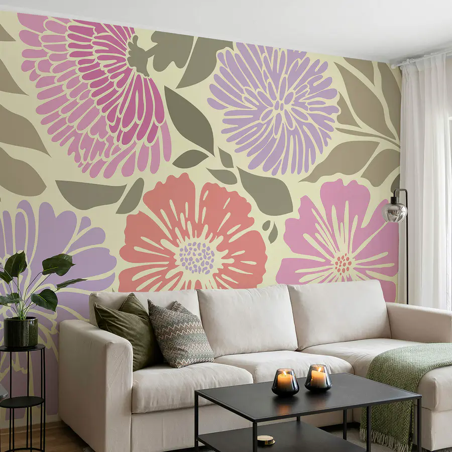 Premeňte akýkoľvek priestor pomocou tejto žiarivej nástennej maľby so živým kvetinovým vzorom, vďaka ktorému budete mať pocit, že ste vstúpili do pokojnej záhrady. Predstavte si, že sa každé ráno prebúdzate obklopení týmito hravými kvetmi v jemných levanduľových a ružových tónoch - je to ako veselé objatie pre vaše steny! Táto nástenná maľba, ktorá sa dokonale hodí do útulnej obývačky alebo svetlej kuchyne, prináša do interiéru kúsok prírody a vytvára osviežujúcu atmosféru. Určite vyvolá radosť a možno vás dokonca inšpiruje k tomu, aby ste sa pustili do aranžovania kvetov, o ktorom ste už dlho premýšľali. S touto úžasnou kulisou sa každý deň bude zdať ako jarný, a kto nepotrebuje vo svojom živote trochu farieb? Vychutnajte si krásu kvetov bez toho, aby ste museli používať kanvicu na zalievanie!