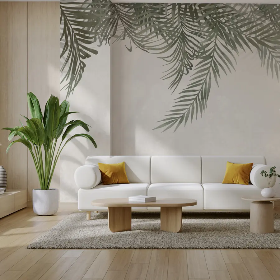 Premeňte nudnú stenu na pokojné útočisko pomocou nástennej maľby "Jemné lístie na mäkkom pozadí". Predstavte si to: prebudenie do sviežej oázy priamo vo vašej obývačke. Jemné listy tancujú na mäkkom, tlmenom pozadí - ako šepot prírody, ktorý vás vyzýva, aby ste sa zhlboka nadýchli. Je to dokonalý doplnok pre každého, kto túži po štipke zelene bez údržby skutočných rastlín. Predstavte si, že hostíte priateľov a oni si nemôžu pomôcť, ale usmievajú sa nad listnatými vibráciami. Je to ako tropická dovolenka bez opaľovacieho krému! Perfektne sa hodí do útulných priestorov alebo otvorených plôch a dodá každej miestnosti upokojujúci, prírodný prvok. Kto by sa s ním na stene necítil o niečo viac zenu?