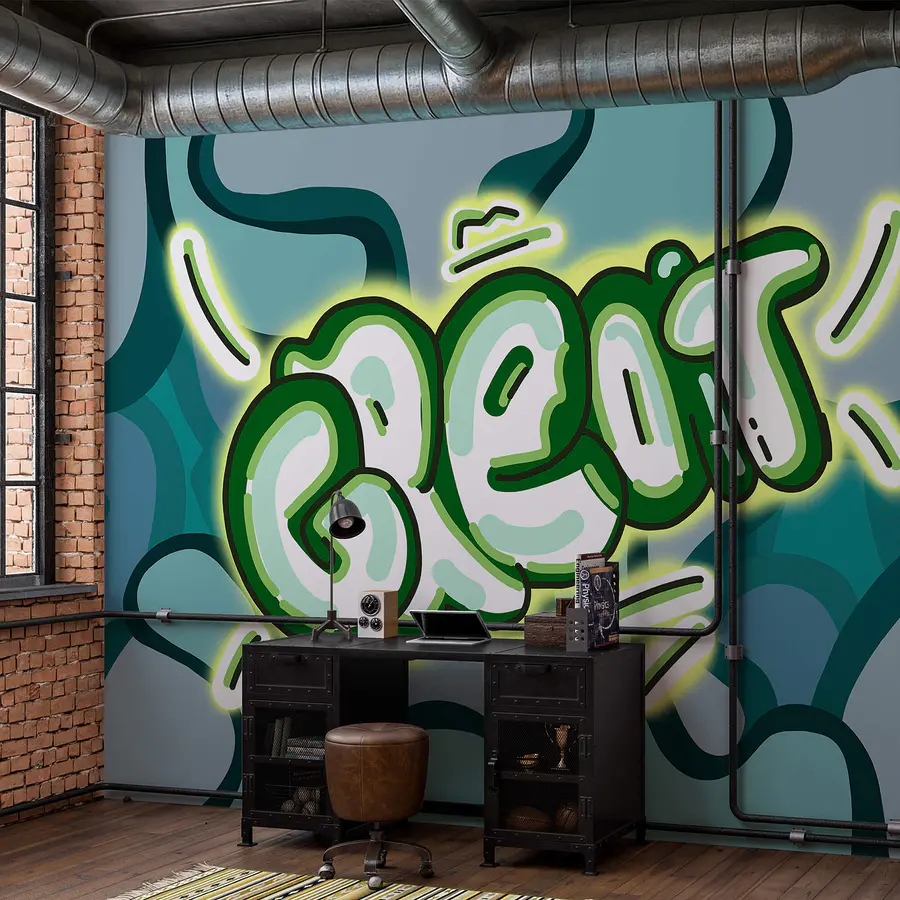 Fototapety Zelený a biely text