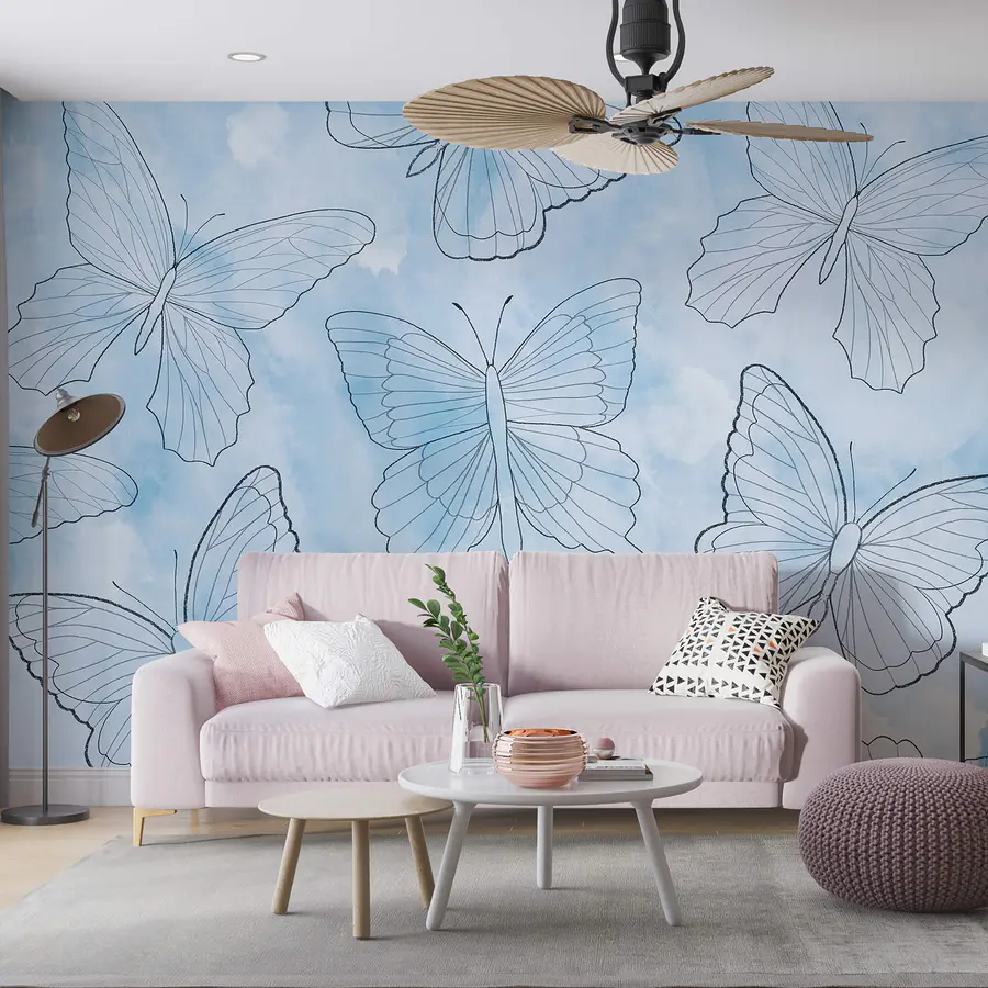 Fototapety Vzor motýľov na modrom pozadí