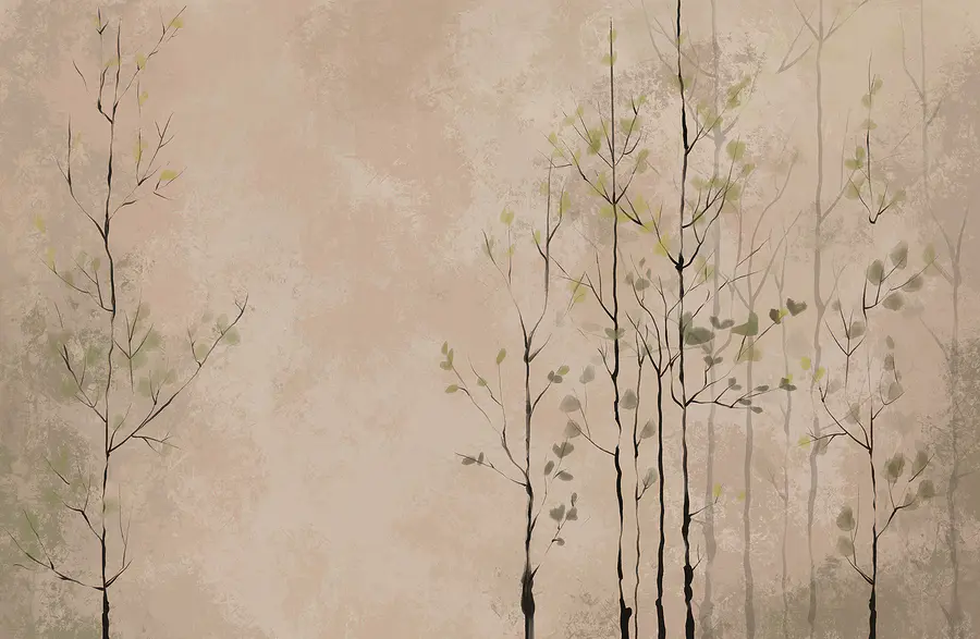 Premeňte akúkoľvek stenu na rozprávkové útočisko s touto ohromujúcou tapetou so stromami, z ktorých každý šepká tajomstvá prírody. Je to ako pozvať pokojný les priamo do vašej obývačky. Tieto jemné zelené farby vynikajú na jemne teplom pozadí a vytvárajú atmosféru, ktorá je upokojujúca a osviežujúca. Predstavte si príjemné večery s šálkou čaju v ruke a touto tapetou ako dokonalým pozadím. Či už ide o tiché čitateľské kútik alebo živé miesto stretávania, obklopí vás pohodlie. Kto by povedal, že kúsok prírody môže spraviť domov takým príjemným?