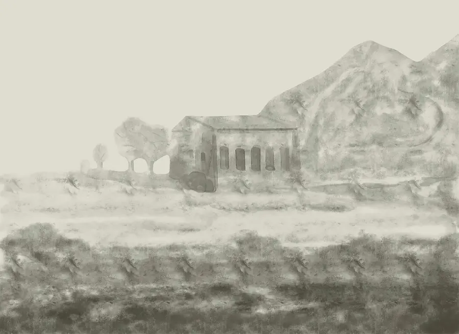 Fototapety Kresba budovy a hory