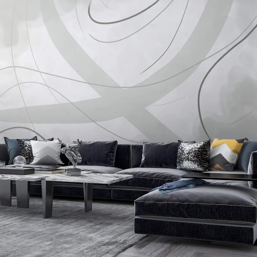 Fototapety Biele a sivé pozadie s čiarami a krivkami