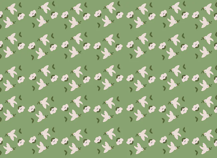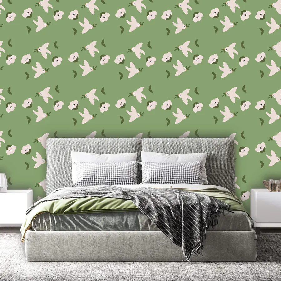 Fototapety Vzor bielych vtákov a zelených listov