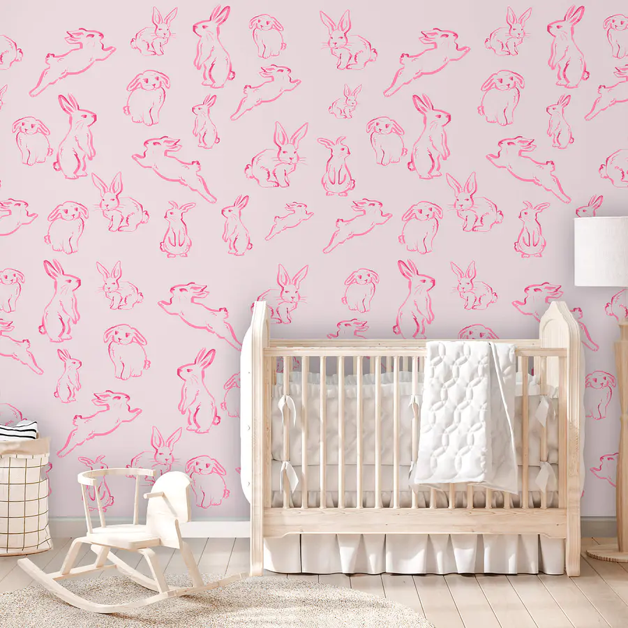 Fototapety Skupina zajacov nakreslená ružovou farbou