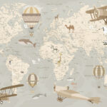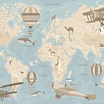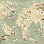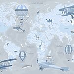 Fototapety Mapa sveta s lietadlami a teplovzdušnými balónmi