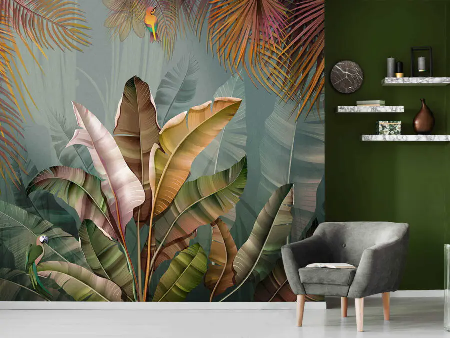13.10 €7.21 €Fototapety Tropický les s palmami a lietajúcim vtákom