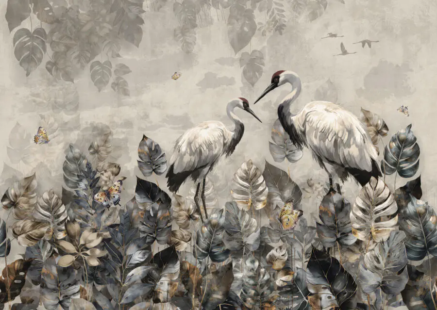 Premeňte svoj priestor pomocou tejto úchvatnej nástennej maľby s príznačným názvom "Pár žeriavov stojacich v poli listov". Predstavte si, že vstúpite do miestnosti, kde tieto majestátne vtáky zdobia vaše steny, sústredené medzi detailne prepracovaným a sviežim lístím - je to ako vstúpiť do pokojnej umeleckej džungle. Žeriavy so svojimi elegantnými postojmi akoby šepkali tajný príbeh, možno dokonca príbeh lásky. Táto nástenná maľba je ideálna pre milovníkov prírody a tých, ktorí túžia po kúsku vonkajšej krásy v interiéri, a dodáva im šarm aj sofistikovanosť. Tlmené zemité tóny sa bez problémov kombinujú s rôznymi dekormi, zatiaľ čo zložité detaily robia z každého pohľadu vizuálnu lahôdku. Predstavte si, že organizujete večeru; vaši priatelia sa možno zastavia uprostred rozhovoru, uchvátení týmto úžasným výjavom. Nie je to len nástenná maľba - je to zážitok, ktorý prináša teplo, pokoj a nádych exotiky priamo do vášho domova. क्यों uspokojiť sa s nevýraznými stenami, keď môžete mať niečo, čo je viac, no, živé?