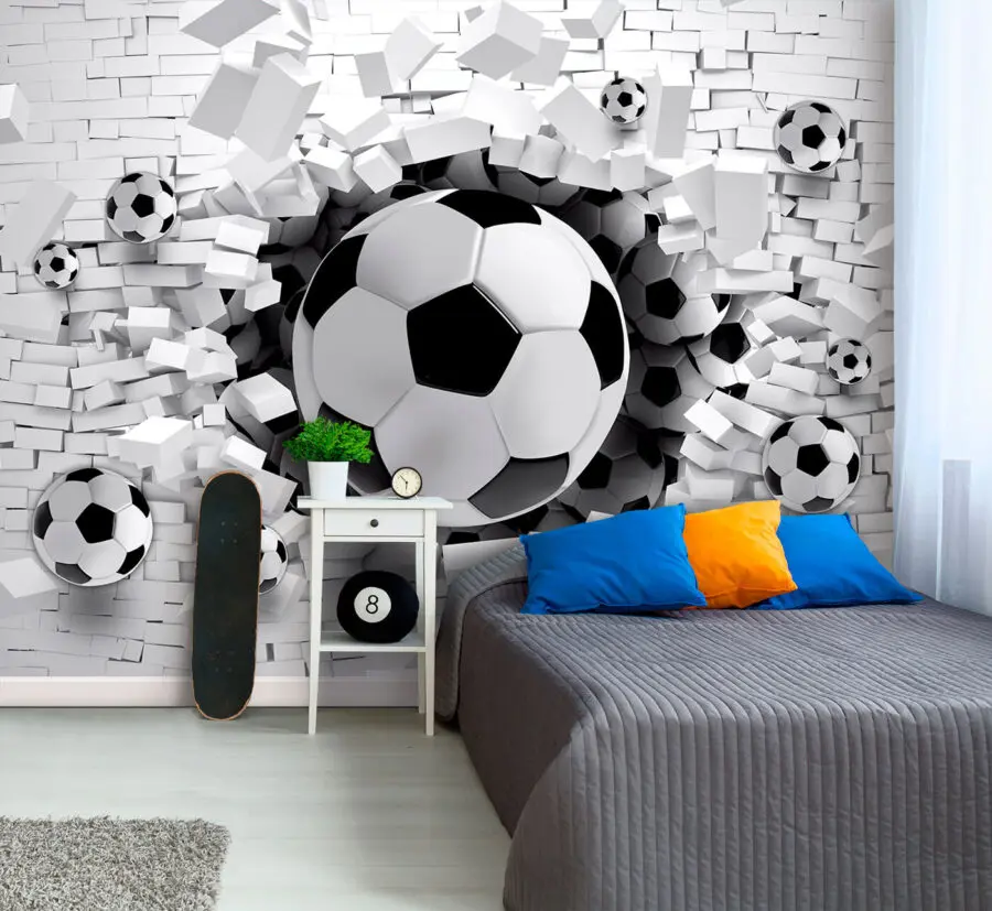 Fototapety Futbalová lopta prerážajúca tehlovú stenu