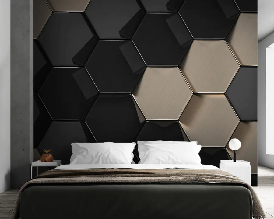 Fototapety Šesťuholníkový vzor v čiernej a béžovej farbe