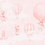 Fototapety Ružové pozadie s medvedíkmi a teplovzdušnými balónmi