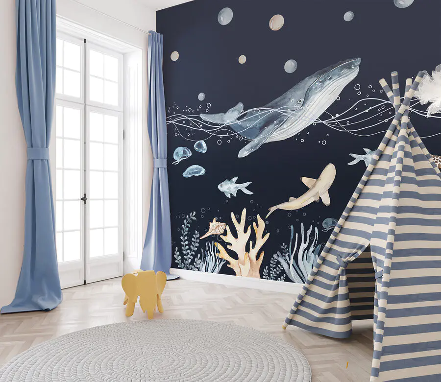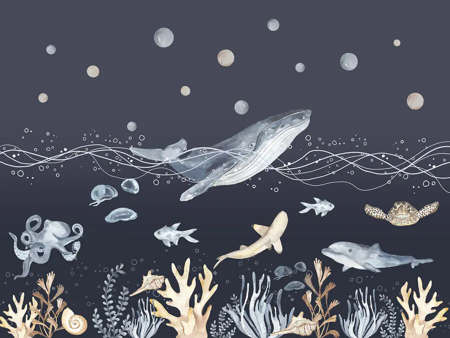 Fototapety Akvarel veľryby a ryby