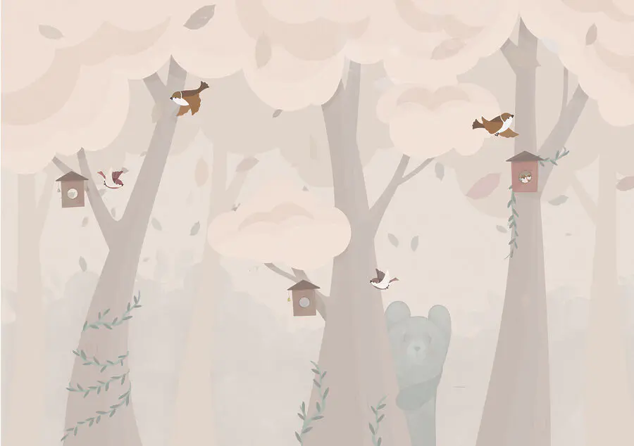 Fototapety Karikatúra medveďa a vtákov v lese