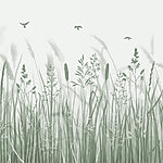 Fototapety Pole s trávou a lietajúcimi vtákmi