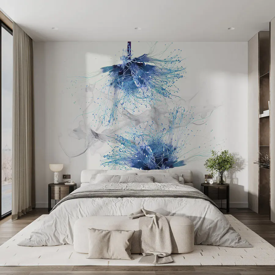 Fototapety Modré kvety s bielym atramentom vo vzduchu