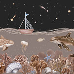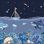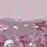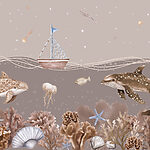 Fototapety Morský život s loďou a veľrybou
