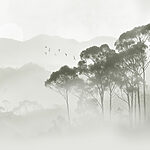13.31 €7.98 €Fototapety Akvarel stromov a vtákov letiacich nad hmlistým lesom