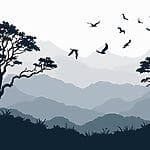 Fototapety Vtáky letiace nad pohorím