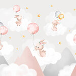Predstavte si, že vstúpite do miestnosti, kde v oblakoch tancujú huňaté zajačiky a každý z nich drží v ruke farebný balónik. Táto nástenná maľba vytvára rozmarný únik, ktorý je ideálny na vyvolanie radosti v akomkoľvek priestore - najmä pre deti alebo mladých srdcom. Jemné farby a hravý dizajn môžu v miestnosti navodiť pocit útulnej krajiny zázrakov. Predstavte si detský chichot, ako ukazuje na každého zajačika a rozpráva príbehy o ich dobrodružstvách na oblohe. Je to ako nežné objatie vašich stien, ktoré každého privíta s úsmevom. Kto by sa nechcel vznášať s týmito drzými roztomilosťami?