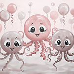 13.31 €7.98 €Fototapety Skupina ružových oblakov a zajačik držiaci balóny