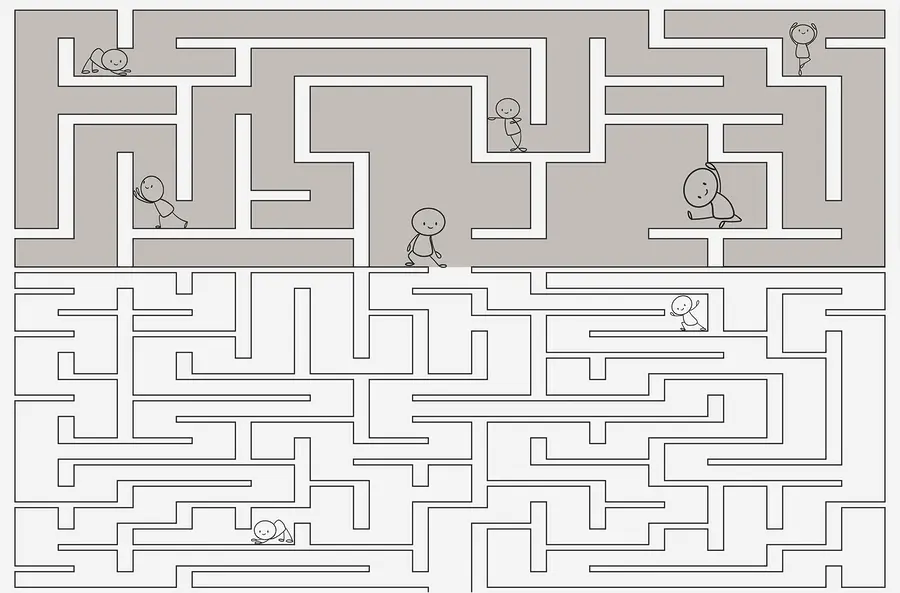 Fototapety Bludisko s ľuďmi chodiacimi po zemi