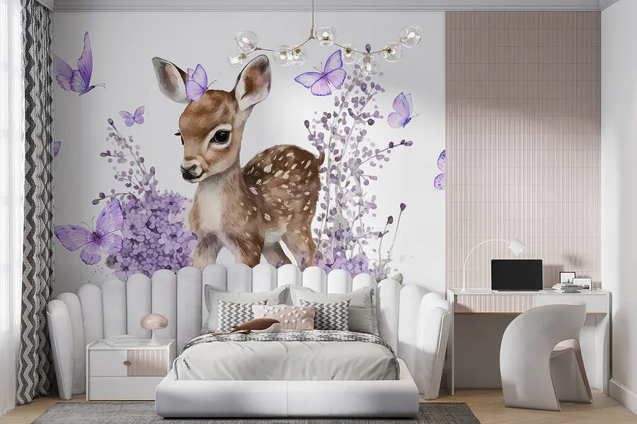 Fototapety Mláďa jeleňa obklopené fialovými kvetmi