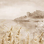 Fototapety Akvarelová maľba hradu a kvetov