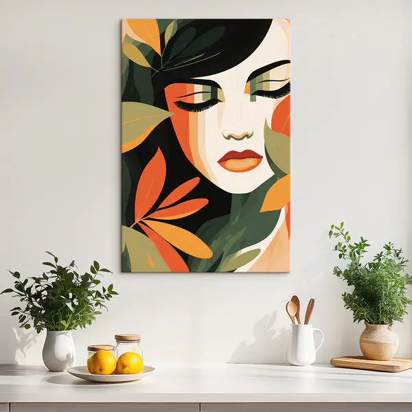 20.50 €12.30 €Obraz Žena so zatvorenými očami a listami okolo tváre