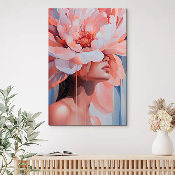 20.50 €12.30 €Obraz Žena sediaca na podlahe s veľkou kyticou kvetov