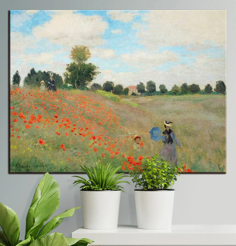 Obraz Maľba ľudí kráčajúcich v poli kvetov