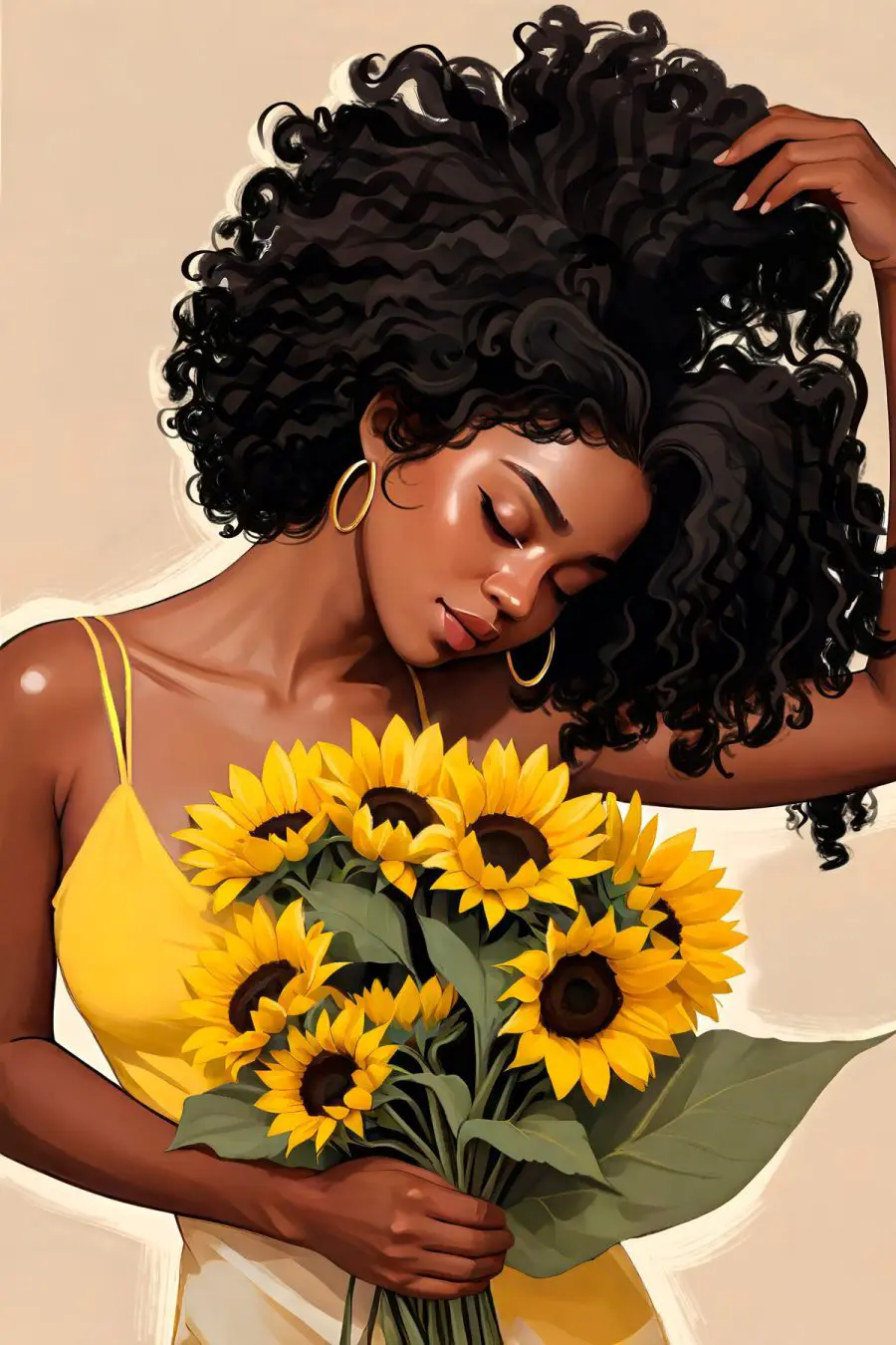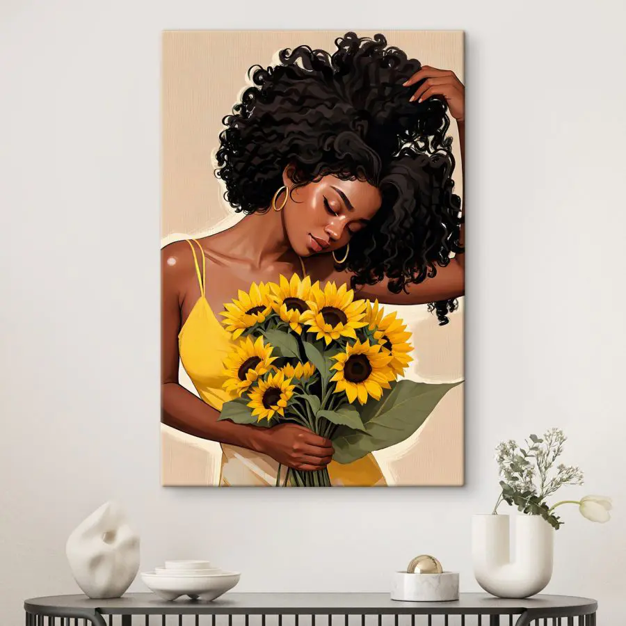 Obraz Žena drží kyticu slnečníc