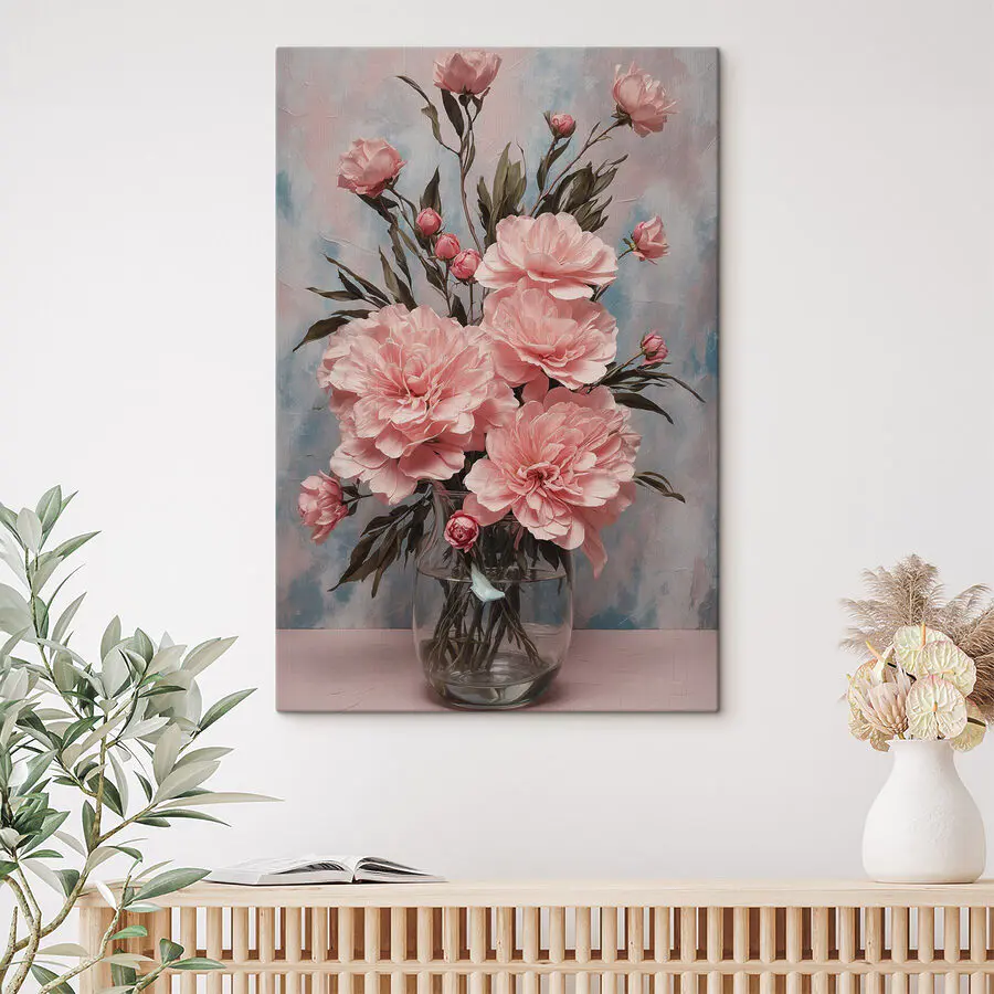 Obraz Váza s ružovými kvetmi