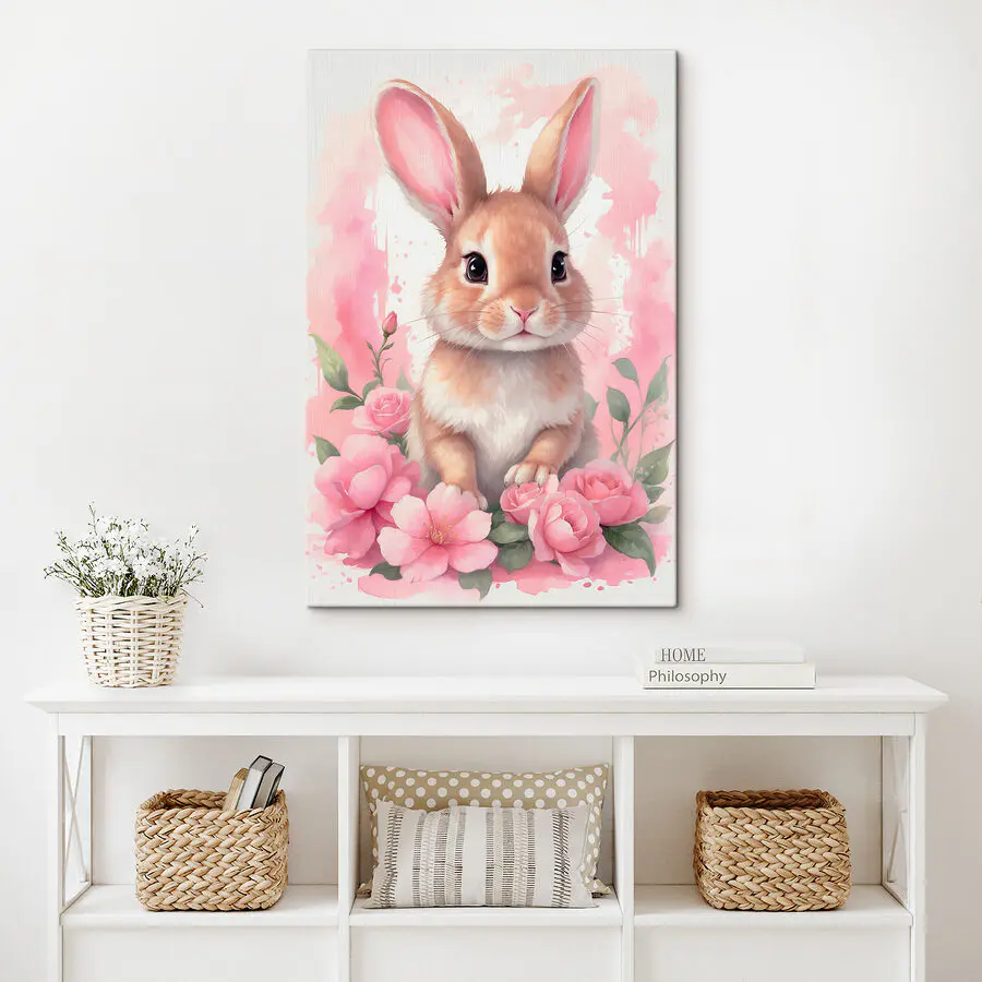Obraz Králik s ružovými kvetmi