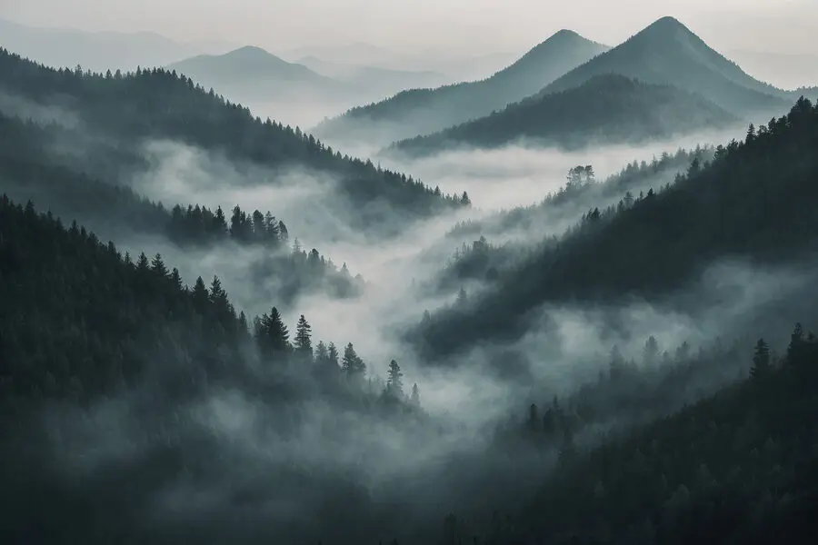 21.24 €11.69 €Obraz Hmlistý les so stromami