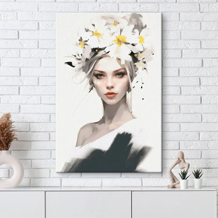 Rozžiarte každý priestor touto úžasnou potlačou na plátne, na ktorej je žena s kvetmi vo vlasoch. Je to ako priniesť si domov malú záhradku - bez potreby zalievania alebo nepríjemného rozhovoru s predavačom v obchode s rastlinami. S jej pokojným výrazom a tými nádhernými kvetmi určite navodí pocit pokoja a krásy. Predstavte si ju zavesenú v útulnom kútiku, ako pripomienku slnečných dní, alebo možno ako ústredný bod v obývačke, ktorý vyvoláva rozhovory. Ideálna pre milovníkov umenia, nadšencov kvetov alebo pre každého, kto chce dodať svojim stenám nádych šarmu a pôvabu. Kto by povedal, že grafika môže pôsobiť tak živo?