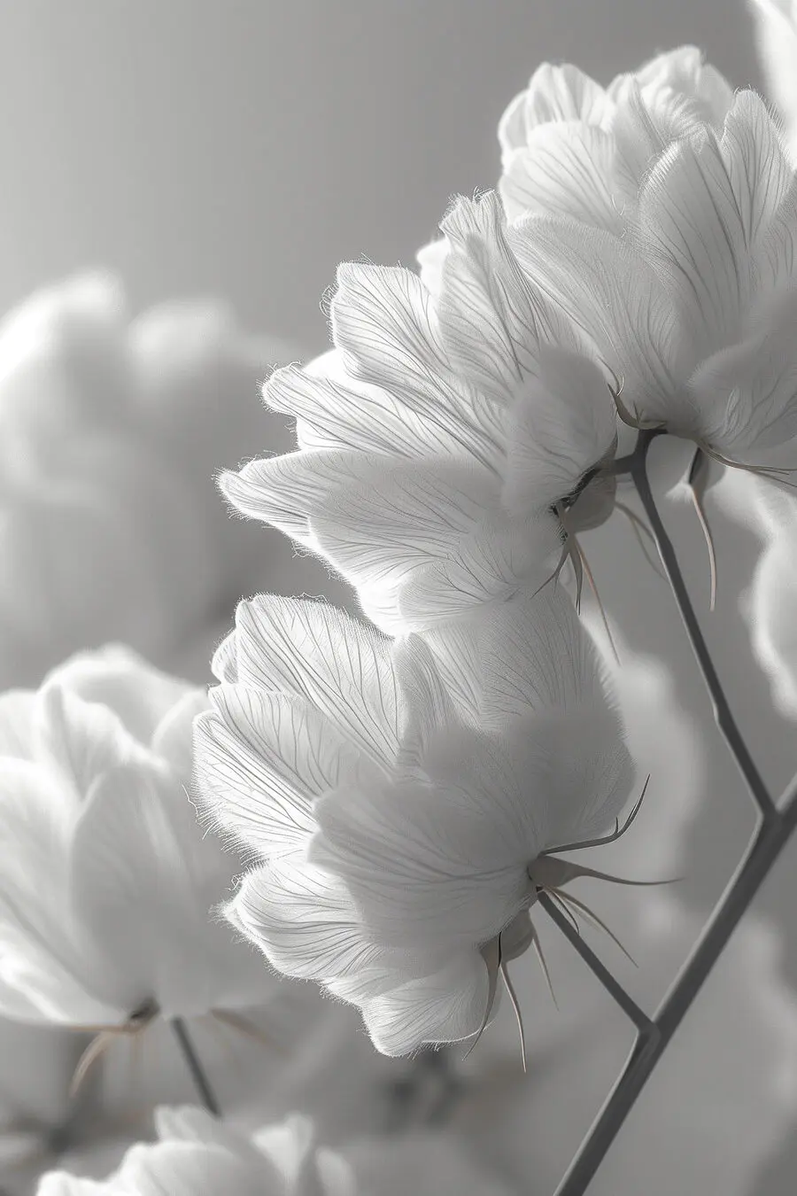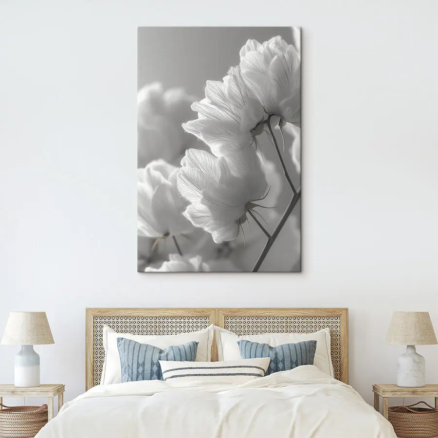 Premeňte akýkoľvek priestor na pokojné útočisko pomocou "Jemných okvetných lístkov v jemnom ohnisku". Táto tlač na plátno zachytáva jemnú krásu kvetov a vytvára pokojnú atmosféru, ktorá našepkáva mier a pohodu. Len si predstavte, že vojdete do miestnosti a privítajú vás tieto jemné siluety, ktoré vyzývajú k pocitu tepla a pohodlia. Zakaždým, keď ukradnete pohľad, je to ako malý únik do náručia prírody. Ideálne pre útulný čitateľský kútik alebo pre zútulnenie prázdnej steny. Kto by nemal rád vo svojom živote štipku jemnej elegancie?