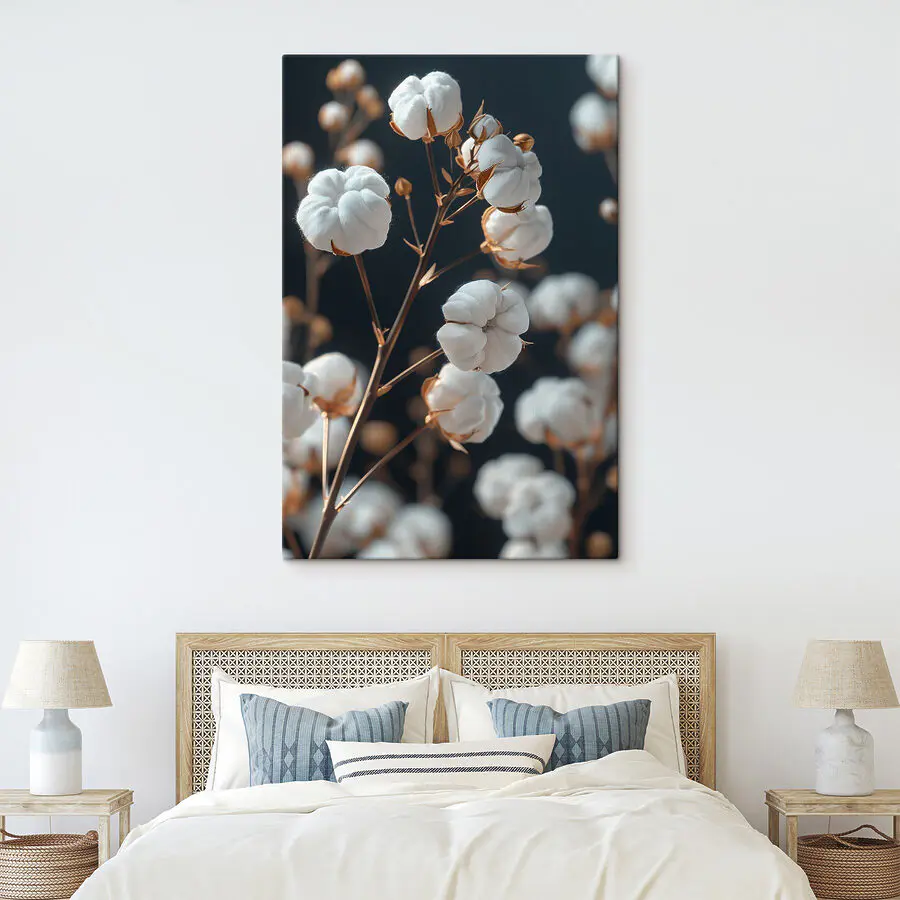 Premeňte akúkoľvek miestnosť pomocou plátna s potlačou "Delicate Cotton Blooms". Tieto mäkké, nadýchané bavlnené trsy vyzerajú, akoby boli pripravené pošepkať vašim stenám sladké vety. Predstavte si, že vstúpite do priestoru, v ktorom vás privíta čaro prírody. Upokojujúca biela a jemná hnedá vytvárajú upokojujúcu atmosféru - ideálnu na uvelebenie sa pri dobrej knihe alebo popíjanie čaju počas lenivých popoludní. Táto potlač nie je len dekoráciou; je to dotyk pokoja, vďaka ktorému je každý pohľad o niečo šťastnejší. Navyše je to skvelý podnet na rozhovor - kto by povedal, že bavlna môže byť taká elegantná? Dodajte svojmu domovu štipku elegancie prírody!