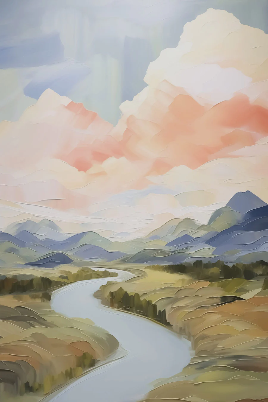20.50 €12.30 €Obraz Maľba lesa s horami a stromami