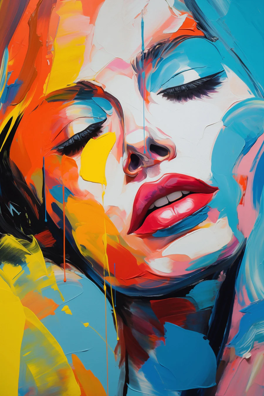 Rozžiarte miestnosť touto úžasnou potlačou na plátne! Zobrazuje ženu zdobenú živými škvrnami farby, ktorá zachytáva odvážneho umeleckého ducha. Predstavte si ju zavesenú v útulnom kúte; farby jednoducho vyniknú a vyzývajú k tvorivosti. Každý pohľad môže vyvolať nový nápad alebo jednoducho zlepšiť náladu. Nádherná zmes odtieňov rozpráva príbeh - možno o bezstarostnom dni plnom smiechu a zábavy plnej farieb. Ideálne pre tých, ktorí milujú jedinečný dekor, ktorý pôsobí ako živý. Je to ako mať oslavu priamo na stene, ktorá každému pripomenie, aby prijal svoju farebnú stránku!