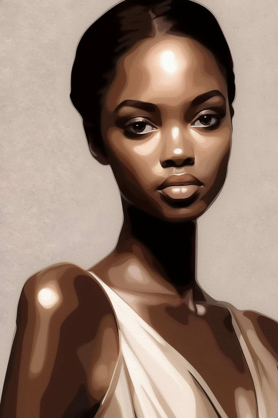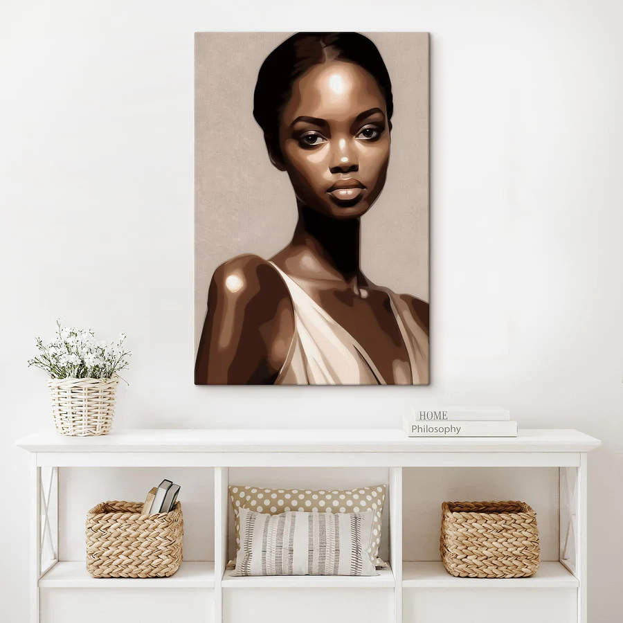 Obraz Žena s tmavými vlasmi a bielym tielkom