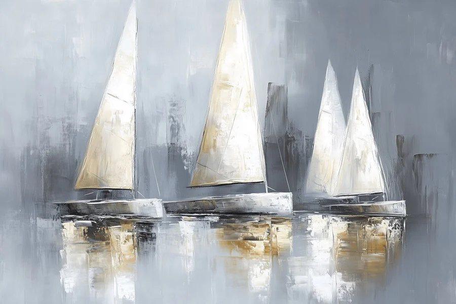 Vydajte sa do sveta pokoja s touto očarujúcou potlačou plachetníc kĺzajúcich sa po pokojných vodách. Jemné farby a zasnené ťahy navodzujú pocit pokoja, ktorý vnesie teplo do každého priestoru. Predstavte si, ako pri pohľade na tento kúsok popíjate kávu, cítite jemný vánok a počujete, ako voda naráža na trup lode. Je ideálny pre chvíle, keď jednoducho potrebujete uniknúť z každodenného zhonu, hoci len na minútu. Zaveste si ho do obývačky alebo spálne a nechajte ho inšpirovať sny o slnkom zaliatych obzoroch a lenivých popoludniach pri mori. Je to viac ako dekorácia, je to vstupenka na útek k moru priamo z vašej steny.