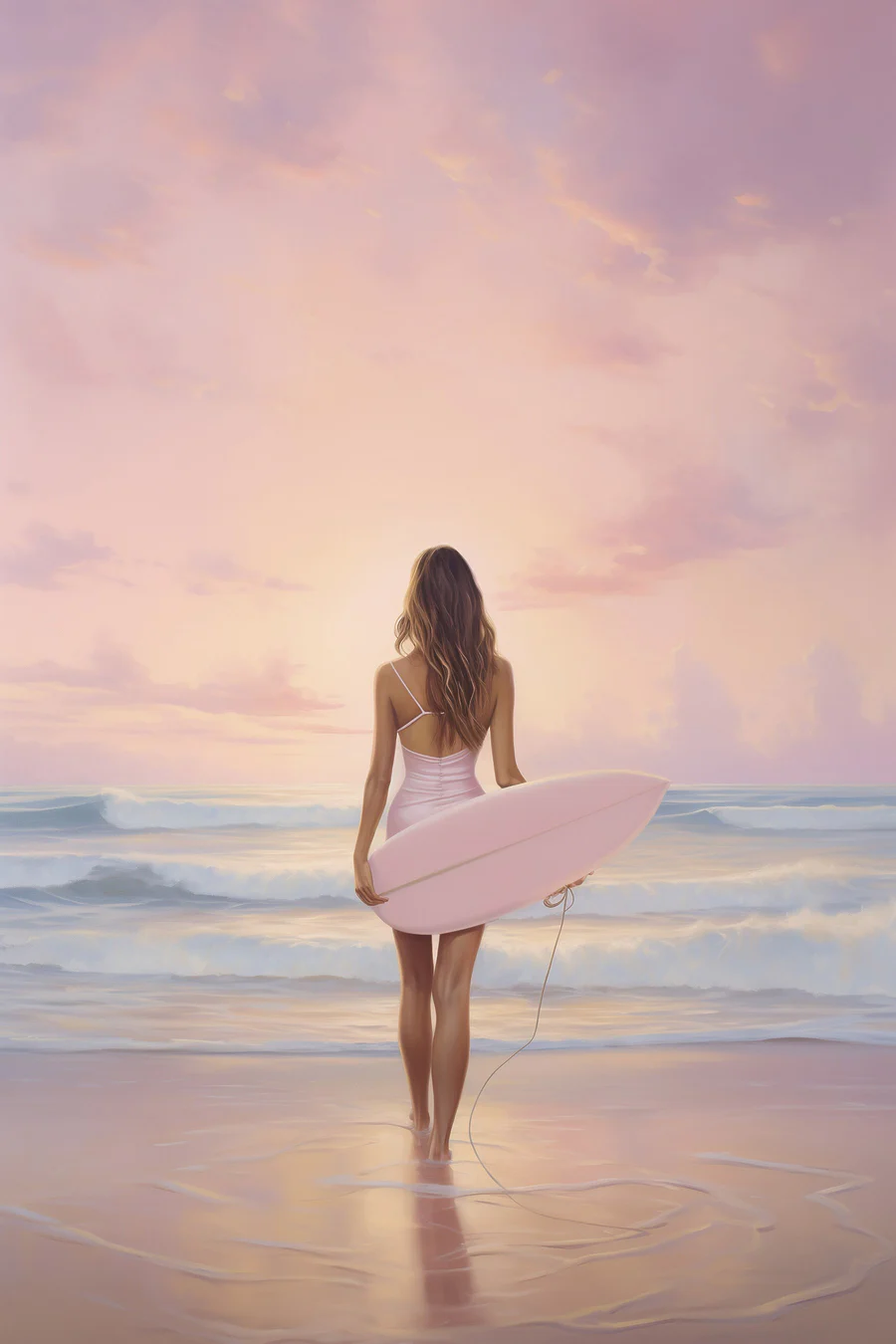 20.50 €12.30 €Obraz Dievča držiace surfovacie prkno na pláži